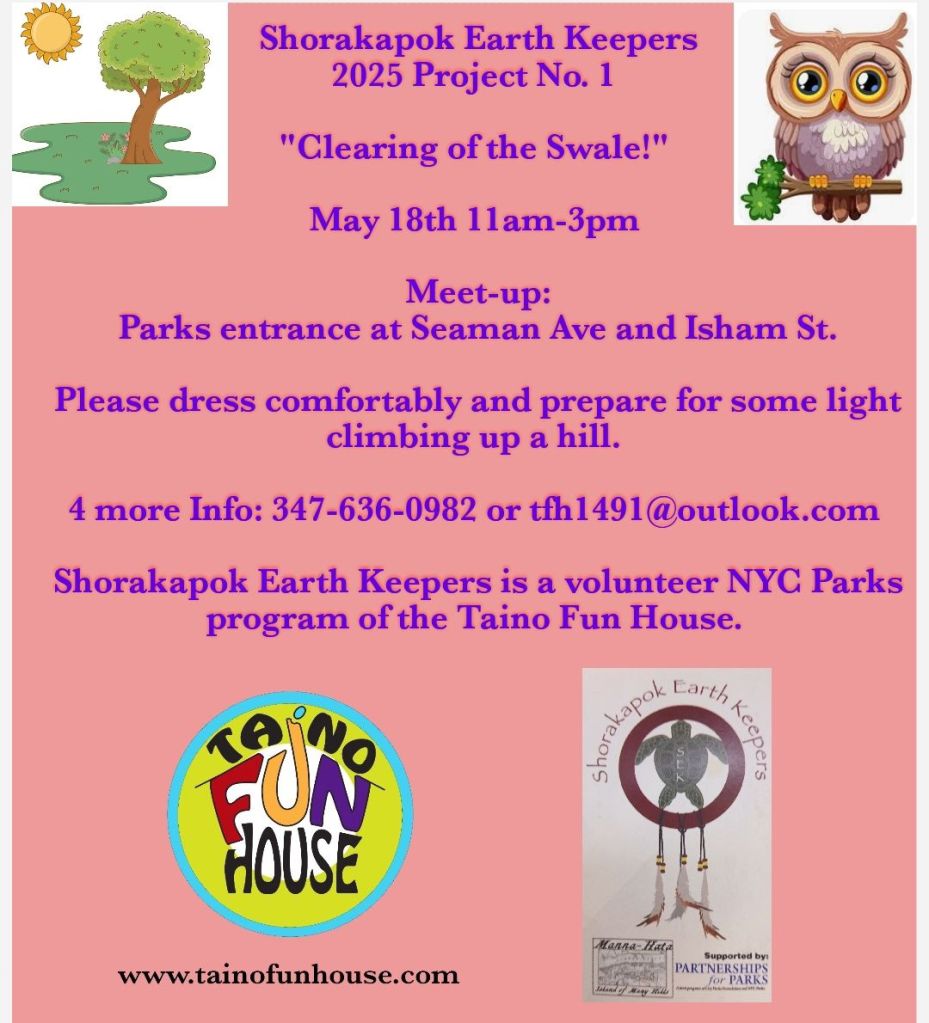 Shorakapok Earth Keepers Shorakapok Earthkeepers is a NYC Parks volunteer group working the land at Inwood Hill Park and other parks. Share this: Share on X (Opens in new window) X More Share on Facebook (Opens in new window) Facebook Like Loading...